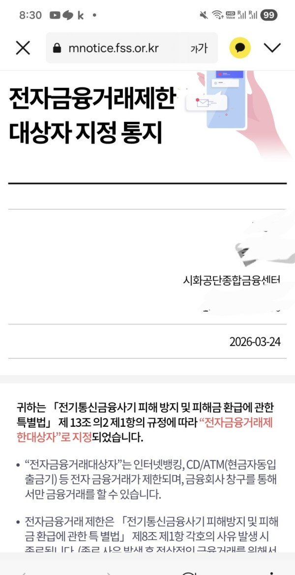 이건은 개별적으로 은행에 내방해서, 대포통장명의인등재 해지하러 가야할듯합니다
