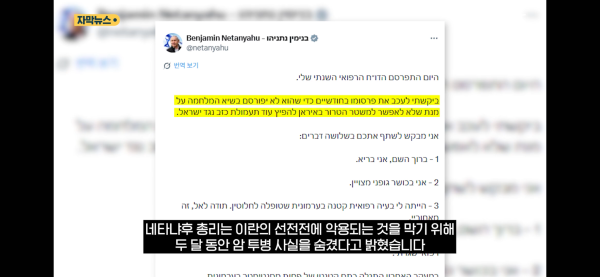 [자막뉴스]"이란이 악용할까 봐" 암 숨긴 네타냐후…"단순 탈수"라더니 아직도 '심박 조율기'