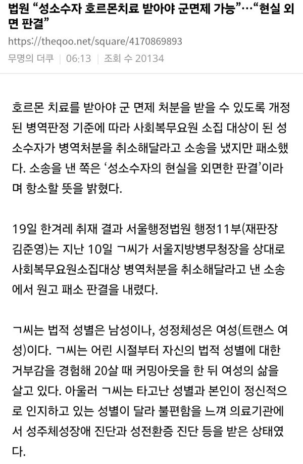 [단독] 이미 여성으로 살고 있는데…법원 “호르몬 치료해야 군면제”