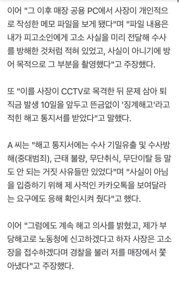 아아 마신 직원 횡령 해고 점주.. 증언 거부한 직워도 퇴직
