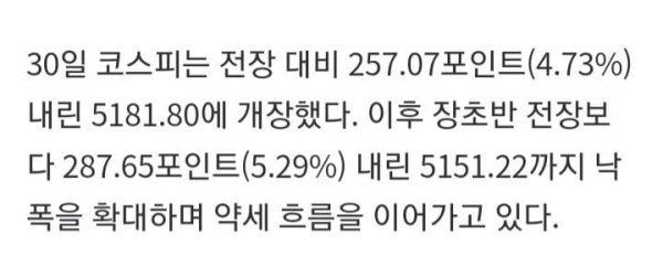 코스피, 개장 직후 5%대 급락 5200선 무너져…삼전·하닉 ‘뚝’ [투자360]