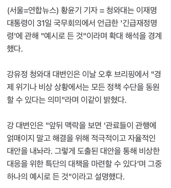 청와대 “긴급재정명령권은 예시로 든 것..모든 정책 동원 의미”