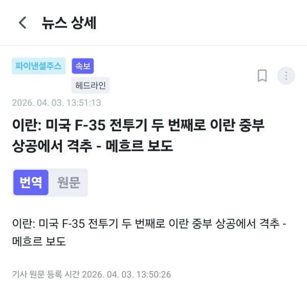 속보] "이란 '중부상공서 미 F-35 격추'"<이란매체>