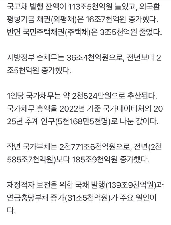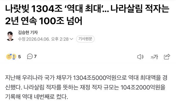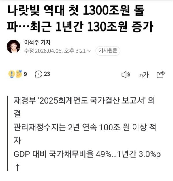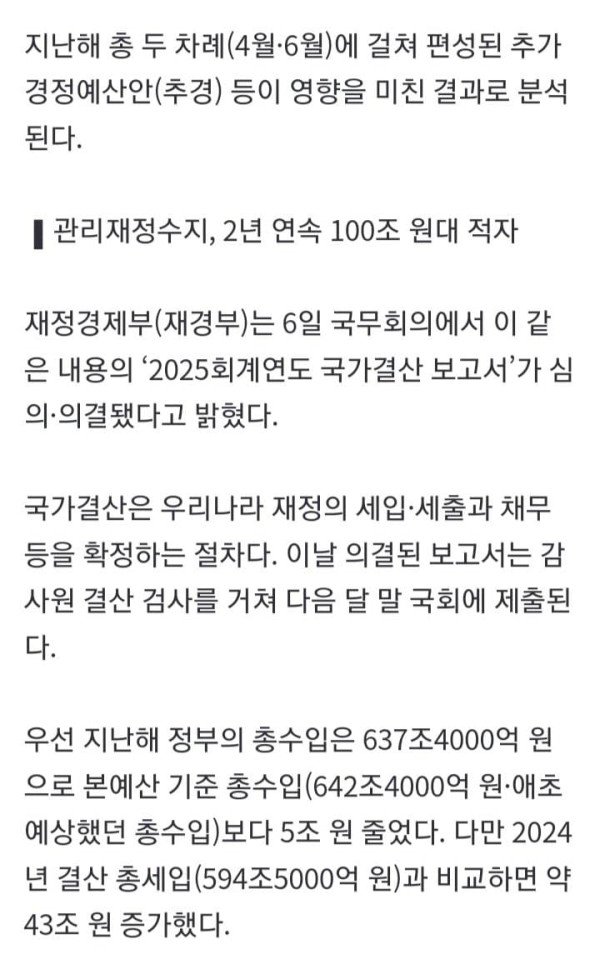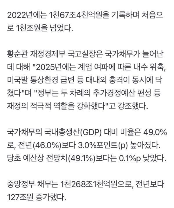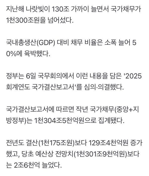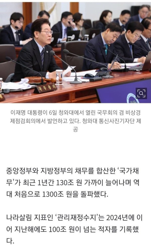 중앙정부와 지방정부의 채무를 합산한 ‘국가채무’가 최근 1년간 130조 원 가까이 늘어나며 역대 처음으로 1300조 원을 돌파했다. 나라살림 지표인 ‘관리재정수지’는 2024년에 이어 지난해에도 100조 원이 넘는