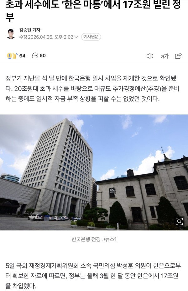 한은 마통 17조 쓴 정부..13조 못 갚아 이자만 77억