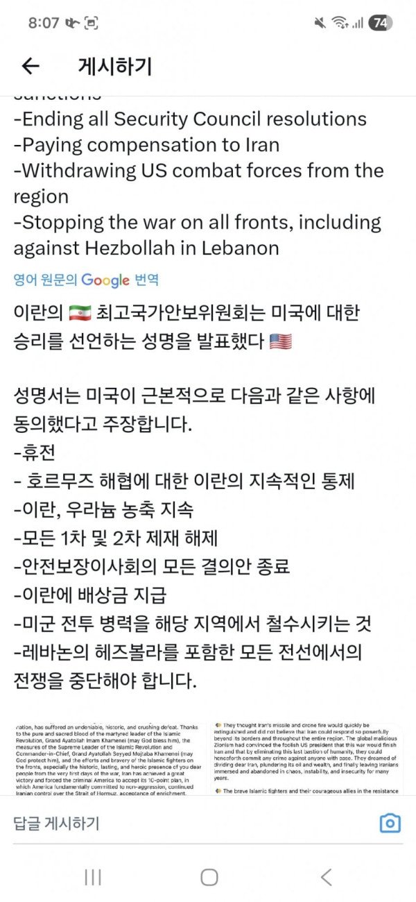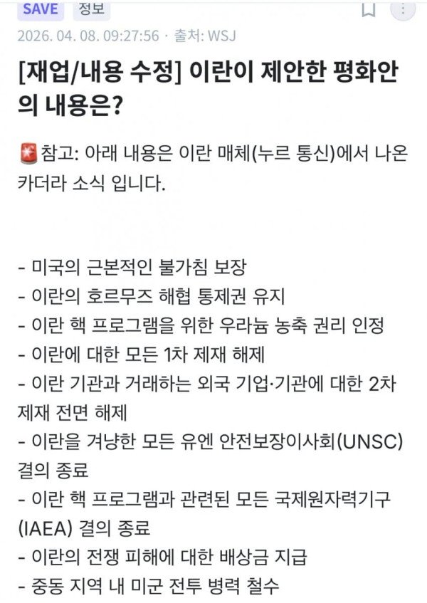 정보) 이란이 제출한 평화협상안