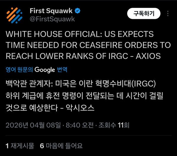 (속.보) 미국, "다 죽어버려서 휴전 전파 시간 걸릴 듯"