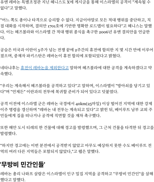 이스라엘은 레바논은 휴전대상이 아니다 주장하였고