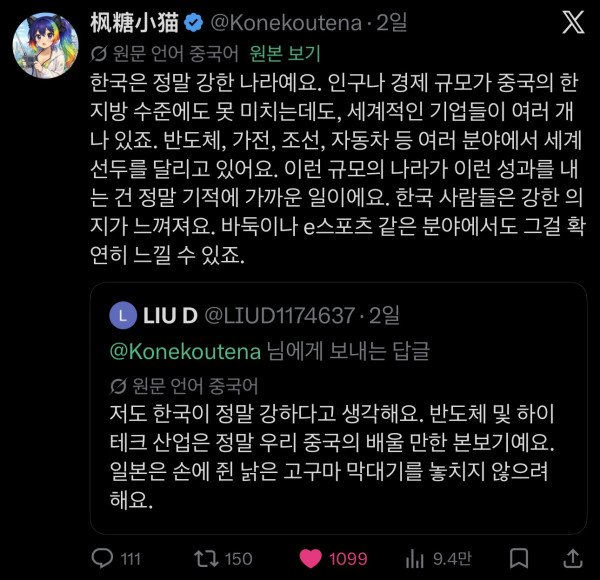 중국인이 한국 이렇게 쓰는거 첨봄