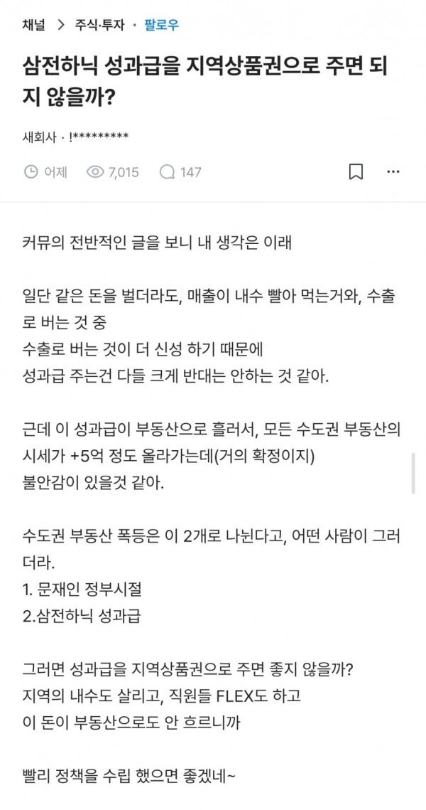 삼전하닉 성과급을 지역상품권으로 주면 되지 않을까?.blind