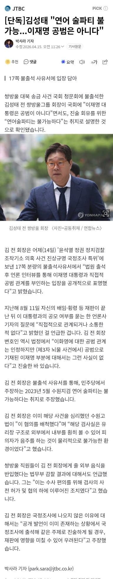 김성태 "이재명 공범은 아니다", 도피중인 배상윤 확인서까지