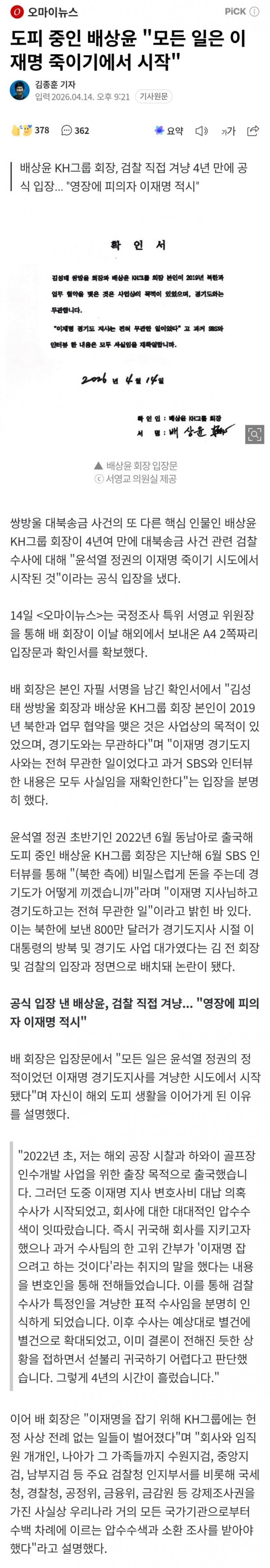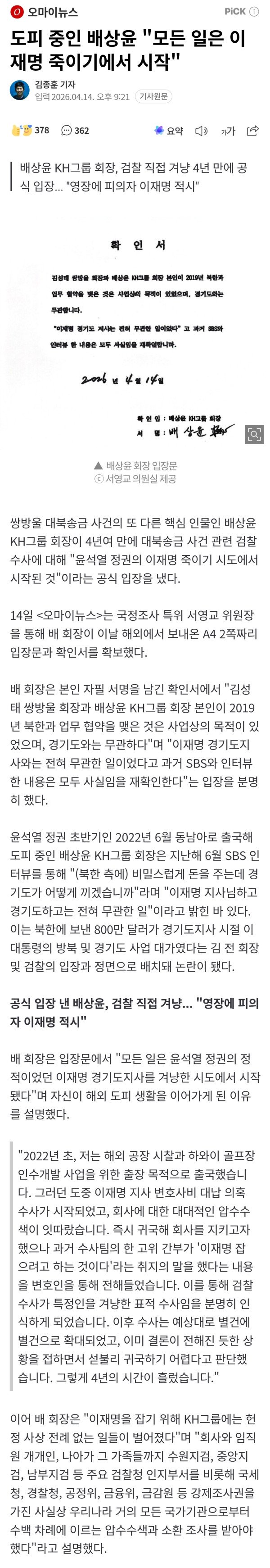 도피 중인 배상윤 "모든 일은 이재명 죽이기에서 시작"