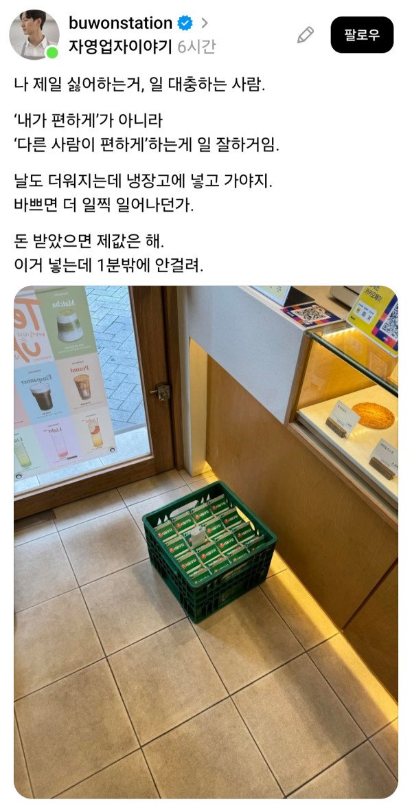 싱글벙글 우유배달부한테 갑질하는 카페 사장