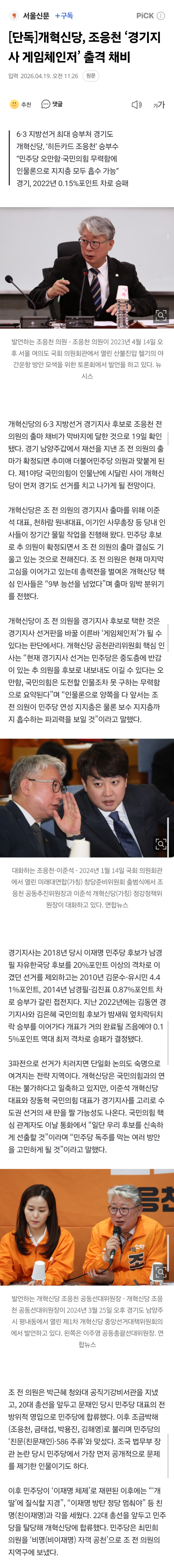 [단독]개혁신당, 조응천 ‘경기지사 게임체인저’ 출격 채비