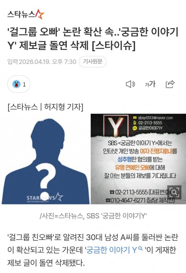 '걸그룹 오빠' 논란 확산 속..'궁금한 이야기Y' 제보글 돌연 삭제