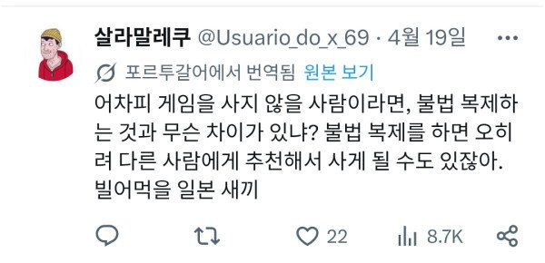 어떤 일본인이 일본 게임 해적판으로 플레이하는 외국인들을 저격함