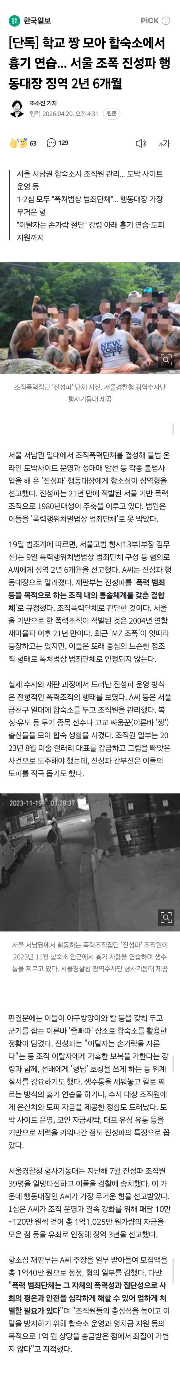 [단독] 학교 짱 모아 합숙 흉기 연습... 서울 조폭 행동대장 징역형