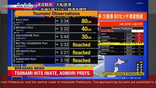 또한 도마코마이항과 센다이항을 잇는 '태평양 페리' 역시 배를 먼바다로 대피시켰으며, 터미널 내에 있던 사람들은 건물 높은 곳으로 대피했습니다.