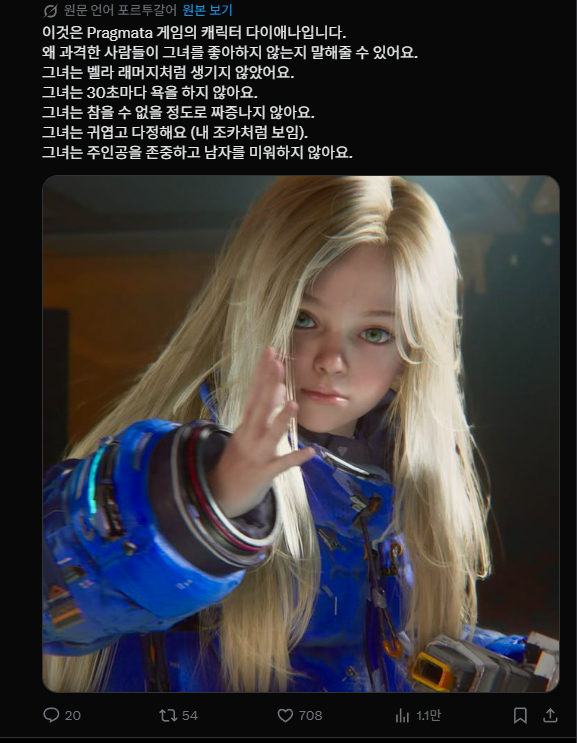 저 트윗도 그렇고 겜도 안 해봤으면서 프래그마타가 페도겜이라는 주장에 리미터 풀린 해외 트위터 게이들이