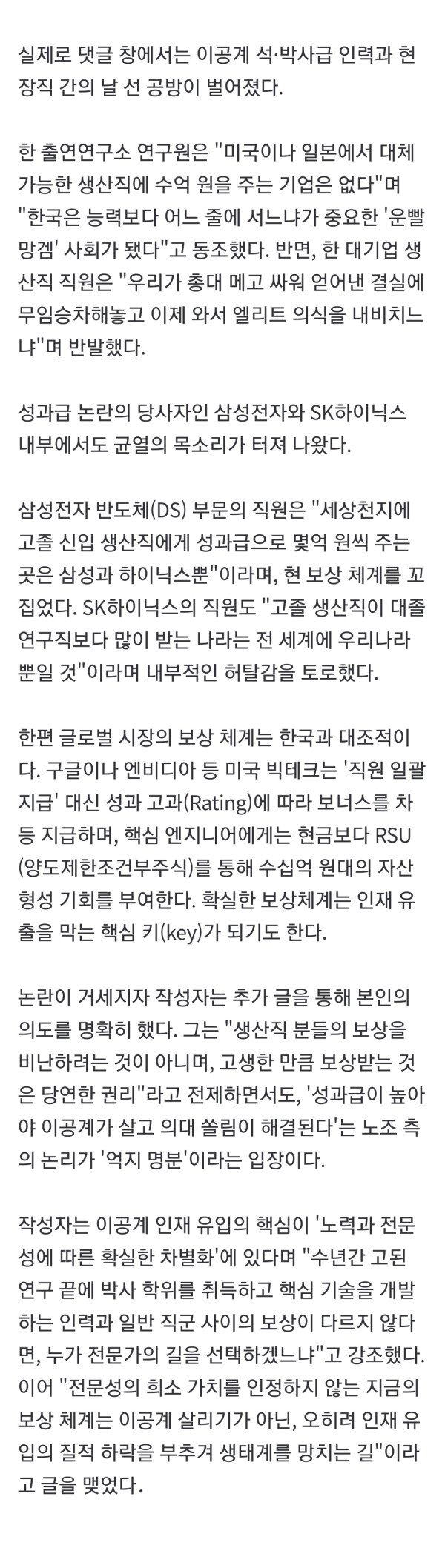 평생을 공부한 박사가 생산직 성과급 10분의 1