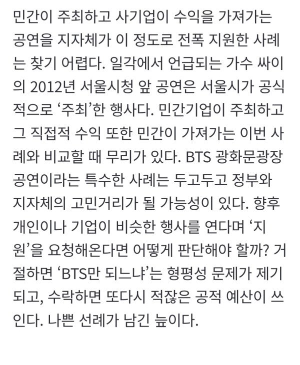 BTS 공연에 쓰인 ‘공공예산’은 정당한가