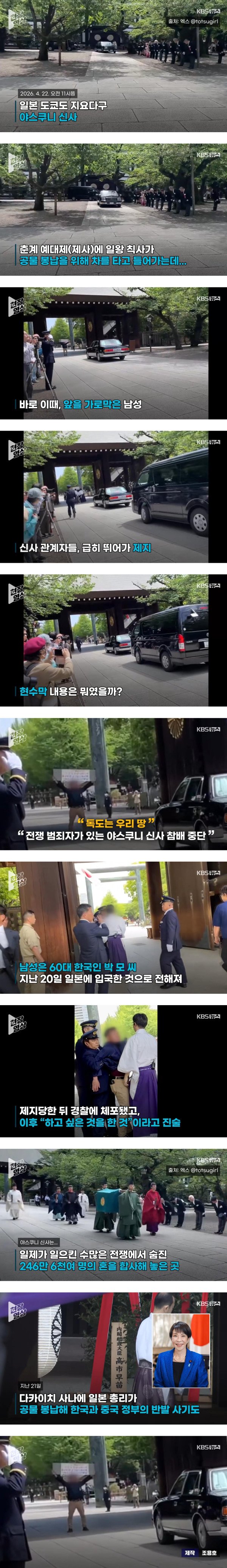 [현장영상] 일본 야스쿠니 신사에서 “독도는 우리 땅”…한국인 남성 체포 / KBS 2026.04.23.