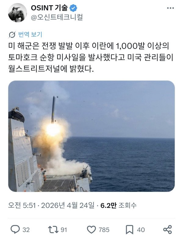 속보) 미국 이란전에서 미사일 3000발 이상 씀