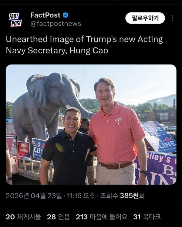 버지니아 주지사를 역임했던 공화당 정치인, 글렌 영킨과 함께 찍은 짤의 사진이 인터넷에서 퍼졌는데