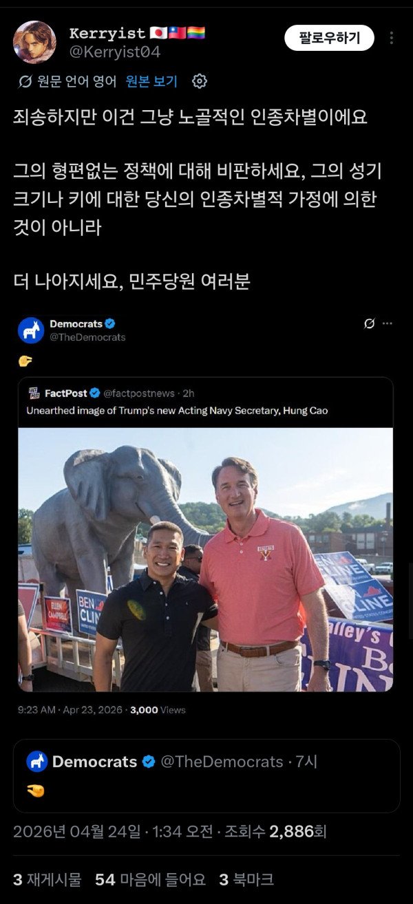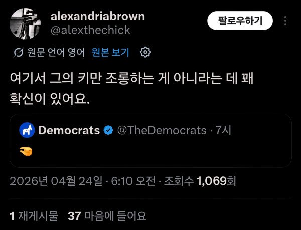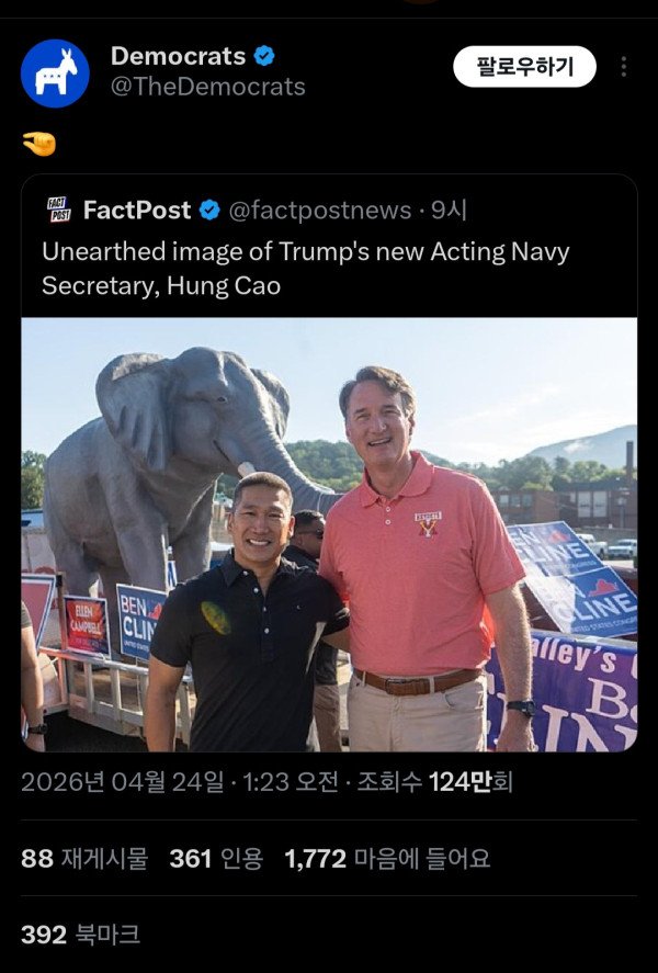 미국민주당 공식계정에서 그 손가락을 트윗으로 올림