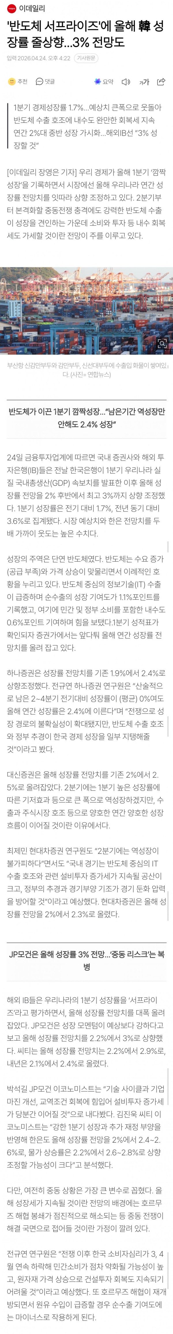글로벌 IB 한국 성장률 줄상향…"3% 눈앞 vs 착시 경계" - 이비엔(EBN)뉴스센터