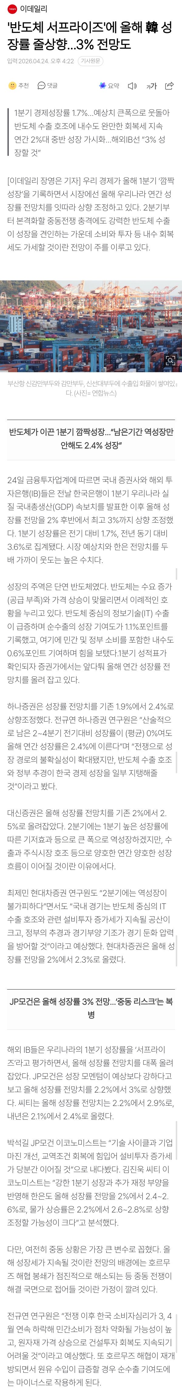 ◆ 반도체가 끌어올린 깜짝 성장…IB들 전망 일제히 상향