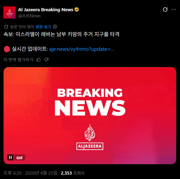 또한 이스라엘이 레바논 남부의 베이트 리프(Beit Lif)와 야타르(Yatar) 주변 지역을 향해 포격 지원을 감행했다는 보고가 잇따르고 있습니다.