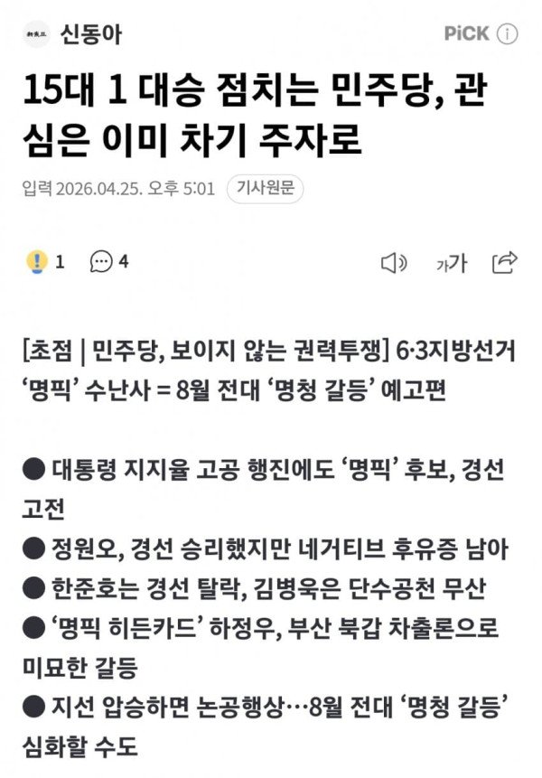 15대 1 대승 점치는 민주당, 관심은 이미 차기 주자로