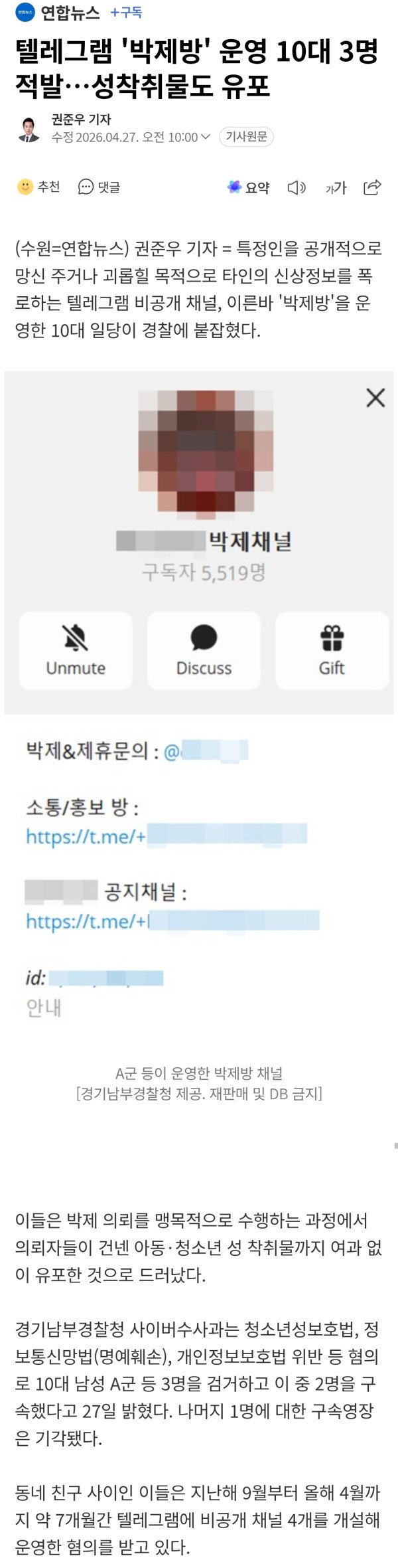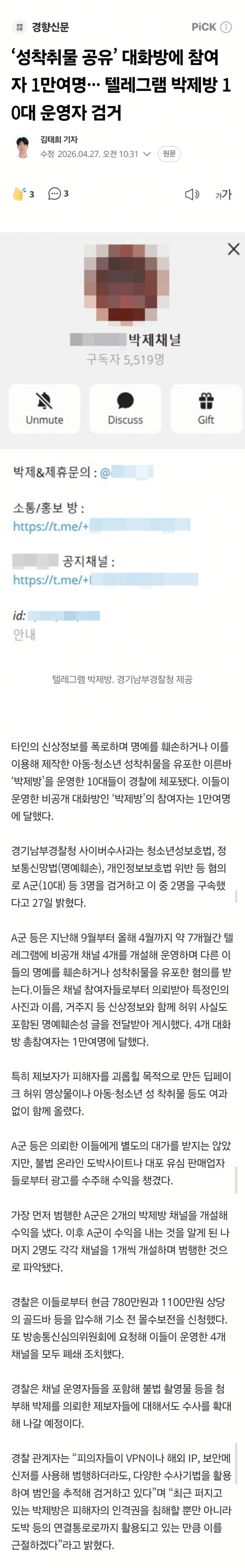 텔레그램 '박제방' 운영 10대 3명 적발…성착취물도 유포