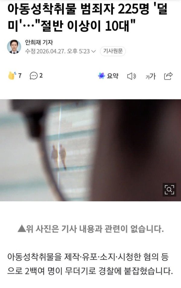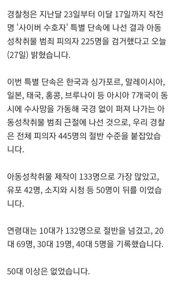 아동성착취물 범죄자 225명 '덜미'…"절반 이상이 10대"