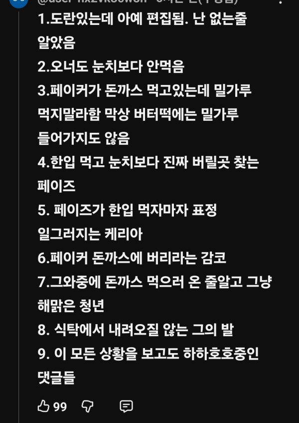 형 돈까스(에 버릴건데) 다 먹었어요?