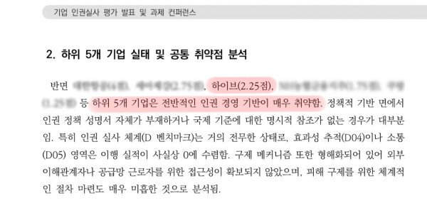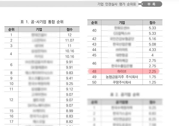 하이브 윤리경영 체면 구겨…변협 평가한 인권실사 50개사 중 48등