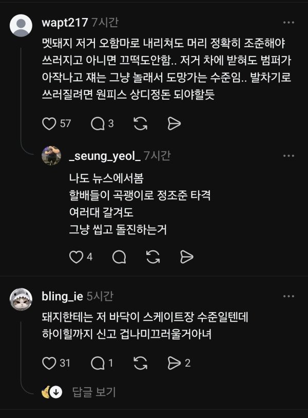 멧돼지가 사람 발차기에 왜 이리 무력한지 의문가지는 사람들