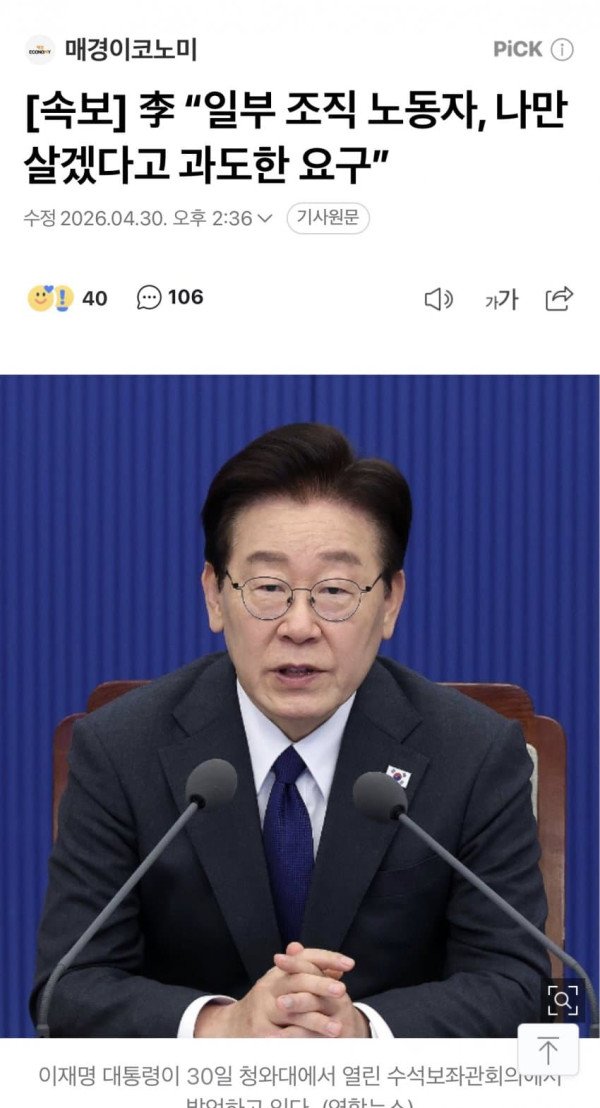 李 “일부 조직 노동자, 나만 살겠다고 과도한 요구”
