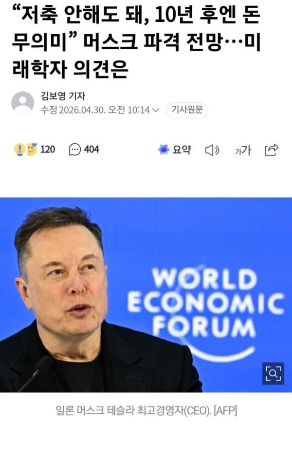 “저축 안해도 돼, 10년 후엔 돈 무의미” 머스크 파격 전망…미래학자 의견은