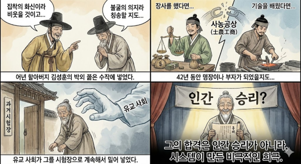 하지만 유교 사회는 사농공상(士農工商)의 굴레를 씌워 그를 시험장으로 계속해서 밀어 넣었음