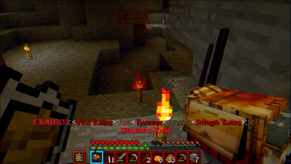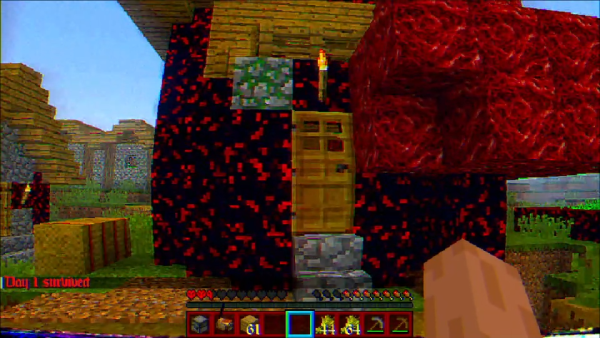 주위의 나무블록들이 오염됐습니다. 횃불은 빨갛게 변했습니다.