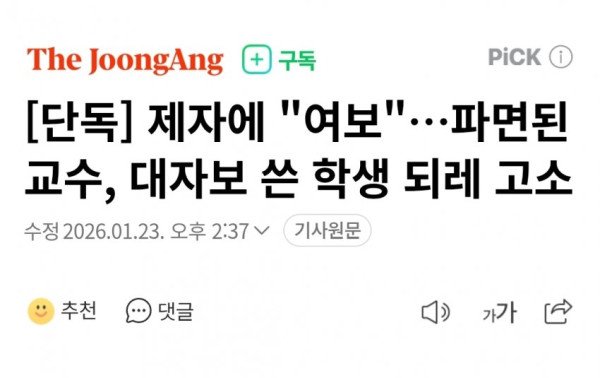 제자에 "여보"…파면된 교수, 대자보 쓴 학생 되레 고소