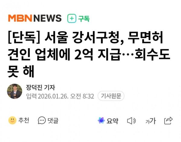 서울 강서구청, 무면허 견인 업체에 2억 지급…회수도 못 해