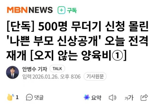 500명 무더기 신청 몰린 '나쁜 부모 신상공개' 오늘 전격 재개