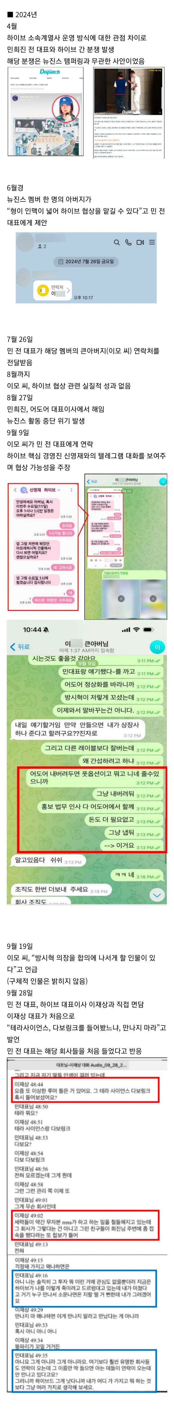 민희진 취재협조문 타임라인 요약본