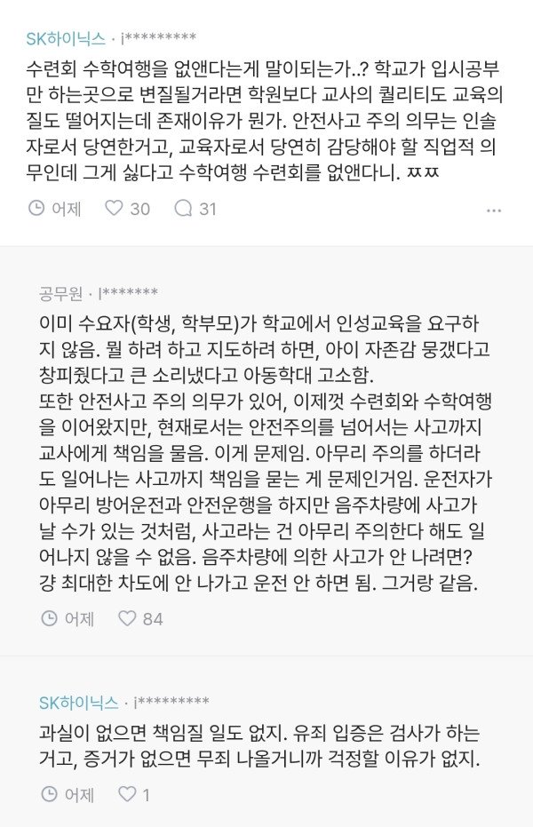성인되서 자기 자식들의 학교에 민원 넣어서