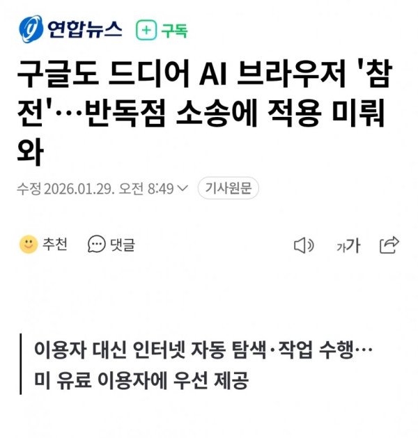 구글도 드디어 AI 브라우저 '참전'…반독점 소송에 적용 미뤄와