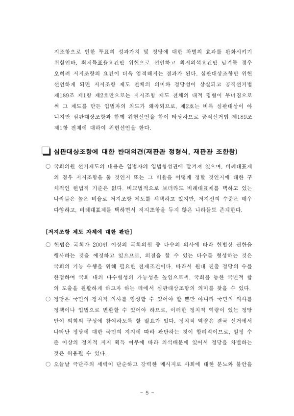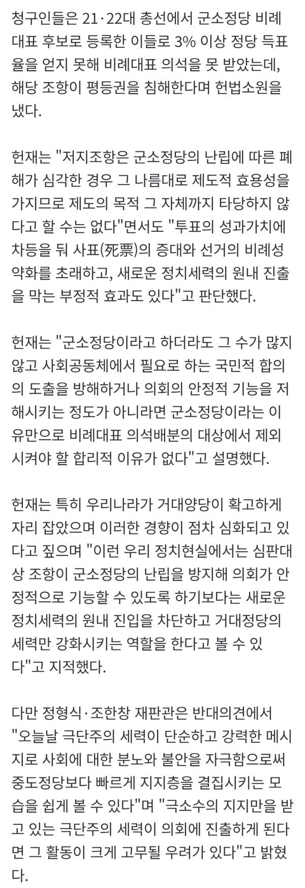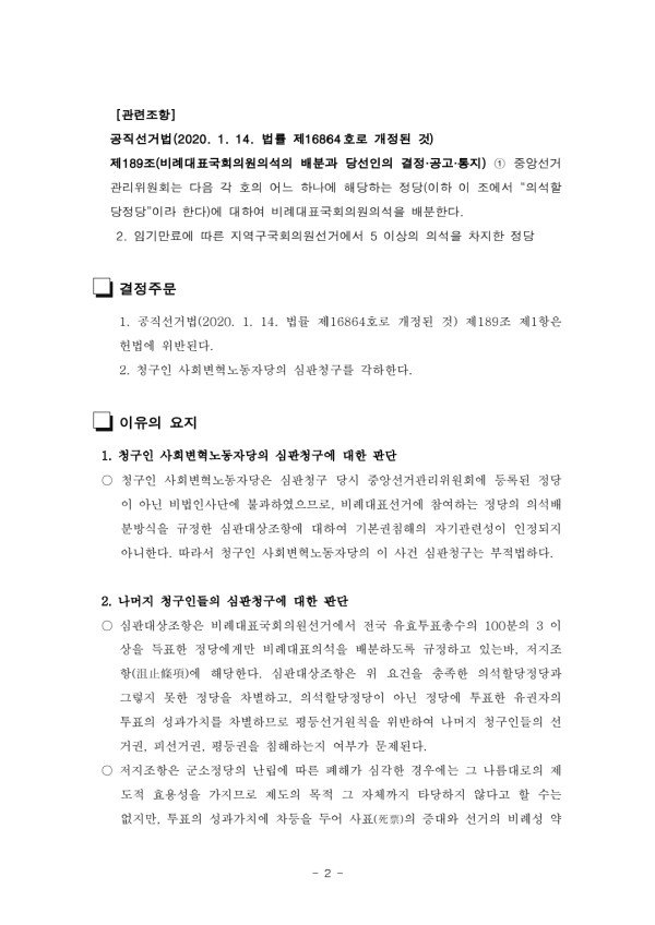[최신판례] 비례대표 의석할당 3% 이상 기준 위헌 결정문