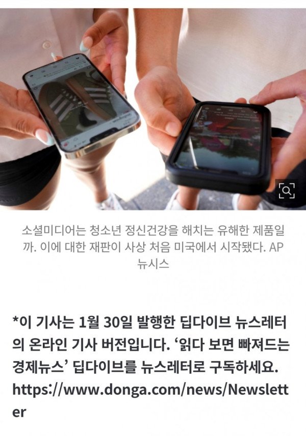• 미국에서 유튜브와 인스타그램 등 소셜미디어 플랫폼을 상대로 한 첫 번째 집단 소송 재판이 시작되었으며, 이는 소셜미디어의 중독성과 유해성을 담배와 비교하며 규제해야 하는지에 대한 법적 판단을 앞두고 있다.